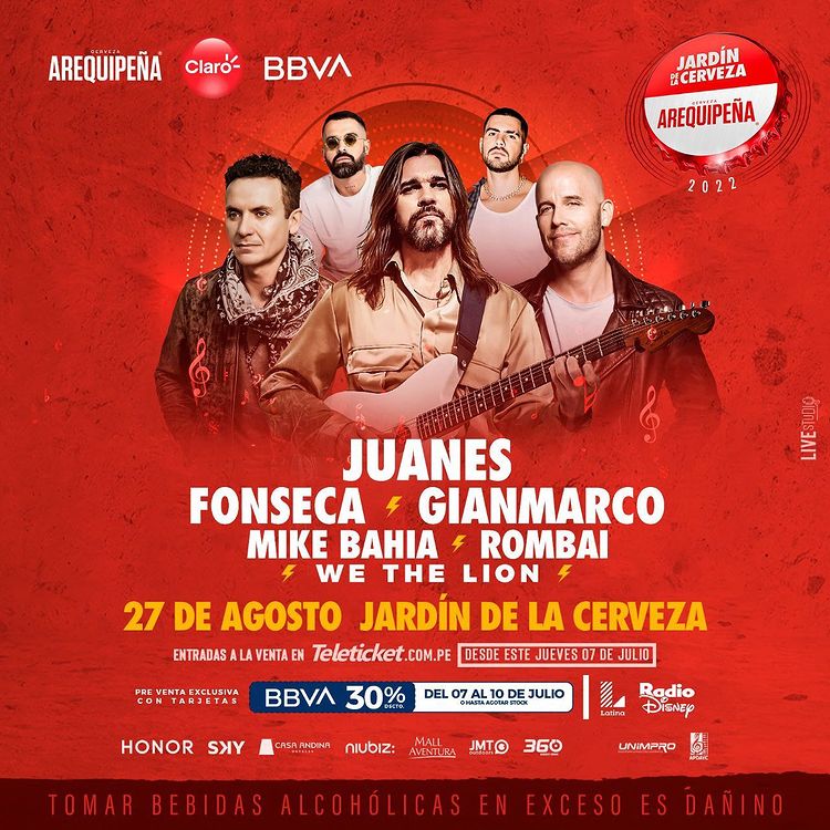 Fonseca llegará a Lima el 26 de marzo del 2026 para presentarse en el Arena 1. Las entradas podrán adquirirse a través de Ticketmaster.