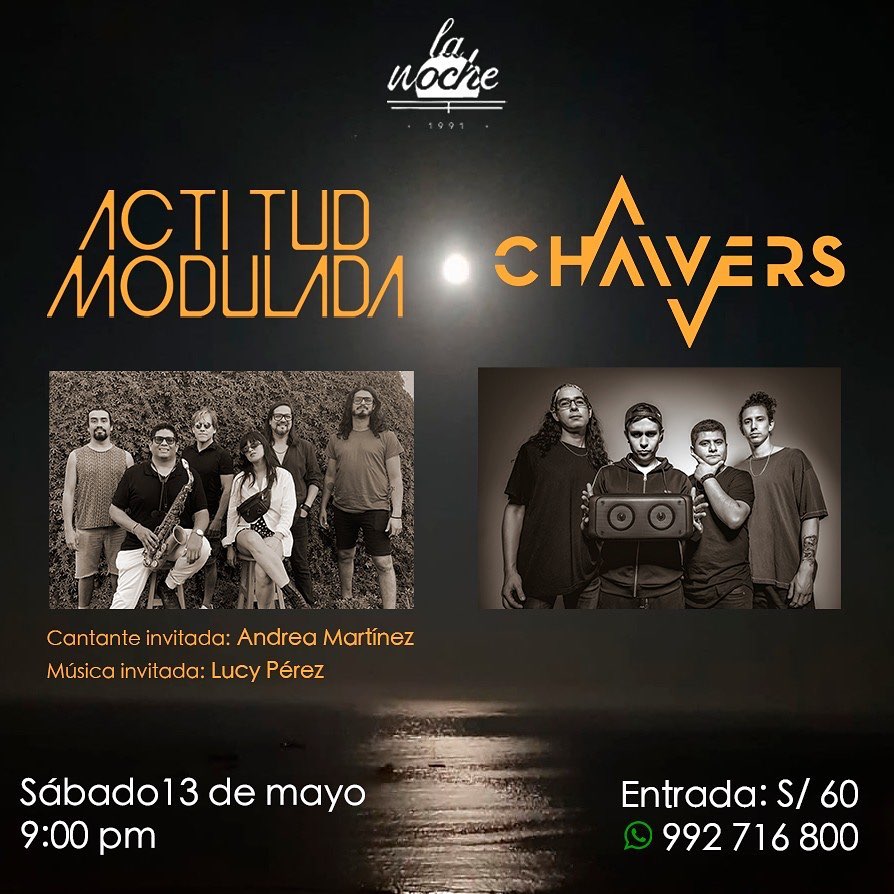 Este sábado 13 de mayo se presentarán en La Noche de Barranco las bandas de rock progresivo Actitud Modulada y Chaivers.