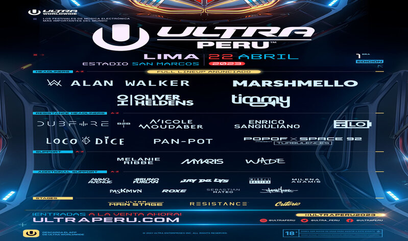 Marshmello, Timmy Trumpet y entre otros artistas en esta primera edición del ULTRA Perú se presentarán este 22 de abril en el Estadio San Marcos.