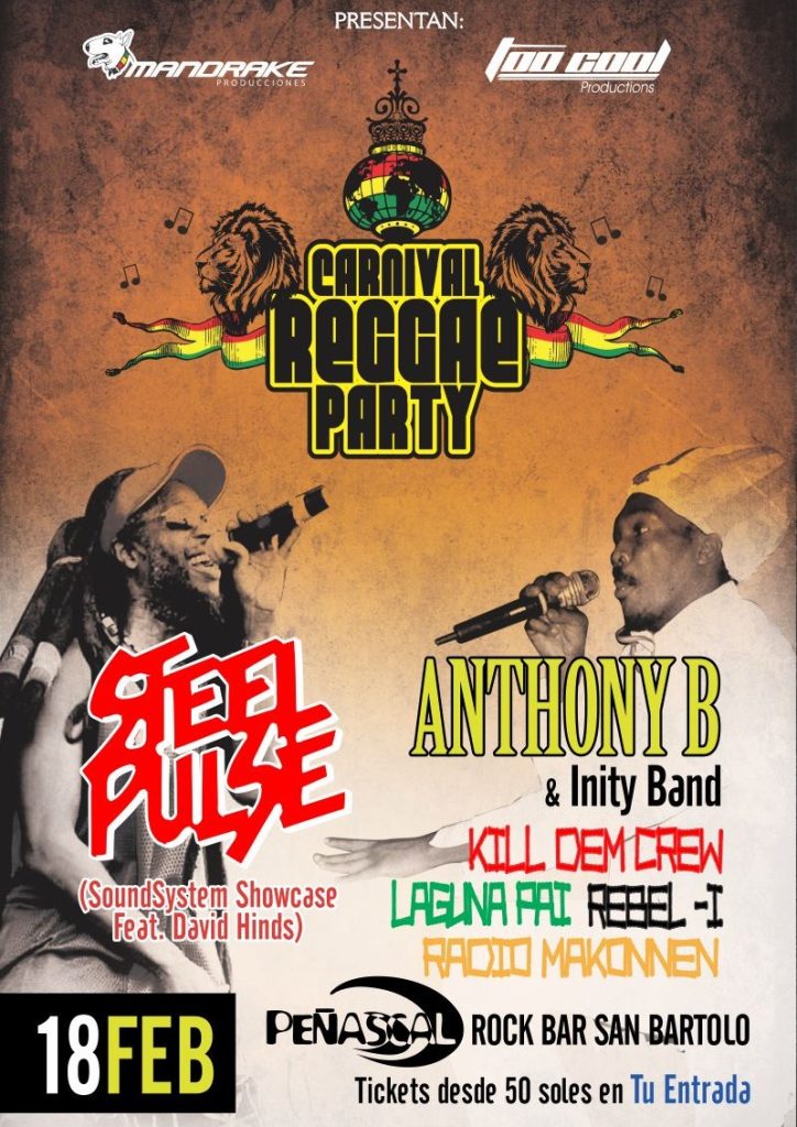 - CARNIVAL REGGAE PARTY: Steel Pulse, Anthony B, Kill Dem Crew y más