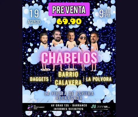 Chabelos y Barrio Calavera se juntan para presentarse el viernes 19 de agosto en el C.C. Bianca de Barranco como parte de La fiesta de espuma recargada.