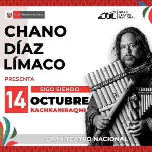 Chano Díaz Límaco, el gran músico ayacuchano, se presentará el próximo sábado 14 de octubre en el Gran Teatro Nacional. Este concierto que busca homenajear a la historia prehispánica de Sudamérica y de Ayacucho destacará por el uso de instrumentos de viento de índole ancestral, compuestos por melodías tradicionales e instrumentos característicos de la región andina.