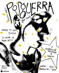 Porque así es. ‘Posguerra’ salió a finales del 2020 y tuvo su evento temático casi dos años después. Esto resulta aún más curioso si se considera que en un principio dicho EP iba a ser publicado en agosto del 2020. La pandemia se interpuso y generó esta secuencia de destiempos. Como sea, por fin sucedió. La productora nene+nene se contactó con ella, le hablaron sobre la idea de dar este evento y luego todo sucedió como dicta la lógica.
