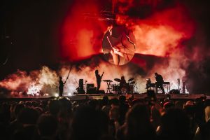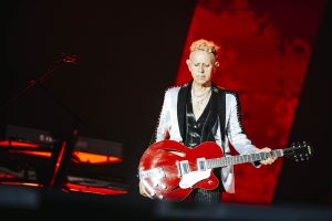 En el fondo del Parc del Fórum, en el segundo escenario más grande, el Santander, la gente empezaba a estar impaciente, se venía una de los espectáculos más increíbles del synth-pop-rock. Así es, empezó la batería de Eigner al fondo para dar aviso que Dave Gahan y todo su glamour iban a tomar el lugar. Depeche Mode empezaba con un Intro oscuro que hacía contraste con la luz de la luna llena en el cielo azul de las tardes largas de Barcelona. Le siguió My Cosmos is mine, Wagging Tongue, Walking in my shoes, para luego recordarnos que no tenemos que decirles cuando los queremos, porque ellos ya lo saben y que no podemos estar bien sin ellos porque simplemente It´s no good, le siguieron otros clásicos como Precious, que fue el momento más íntimo de la noche. De esta banda no solo se puede esperar música, su puesta en escena está llena de simbolismos que toman figuras del cine, proyectaron a Gahan en una partida de ajedrez con la muerte, rindiendo homenaje al Séptimo sello (1957), el show siguió con Enjoy the silence, Just Can’t Get Enought, Never Let Me Down Again, entre otras, para cerrar con Personal Jesus.