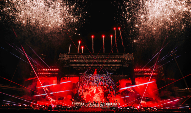 Cada canción era un espectáculo por sí mismo. Desde clásicos como “Thunderous”, “S-Class” y “Back Door”, hasta tracks más recientes como “LALALALA” o “Blind Spot”. Las pantallas proyectaban escenas que parecían sacadas de una superproducción de Hollywood. Pasajes enteros eran como una película en la que Stray Kids eran los protagonistas. Drones, fuegos artificiales, efectos visuales coreografiados al milímetro, más de 20 bailarines en escena y un muñeco gigante detrás de ellos en uno de los momentos más visuales del show.