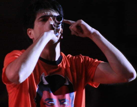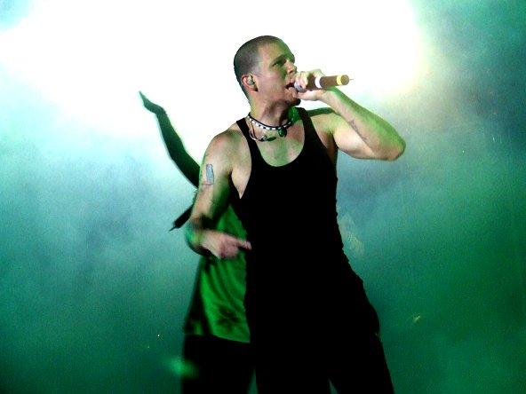 De pronto, la impresionante voz de la bellísima PG-13 daba el inicio a “Hormiga brava”, mientras el nuevo new kid on the block se mandaba con su lírica urbana de flow lento, gran canción. Luego se viene la sexta de la noche, pero antes toca el tema de la gripe porcina, “hay un plan detrás de esto” dice René mientras desmarcara el oportunista negocio de la venta de mascarillas; la canción es “Que lloren”, la que les dedica a los supuestos raperos que hay en el género del reggaetón.Pero, entre tanta grosería, le llego el turno de “soltar algo bonito” y nuevamente se subió, aunque esta vez solo fue una la afortunada, una muchacha de pelo rizado para que le recitaran la letra de “Un beso de desayuno”, la cual Residente dedicó a “todas las muchachas bonitas de acá”, canción que finalizó, luego de un solo de trompeta que parecía recitar poesía, con Rene cantando a capella. “Gracias mi sangre” dice antes de seguir con el siguiente bombazo.