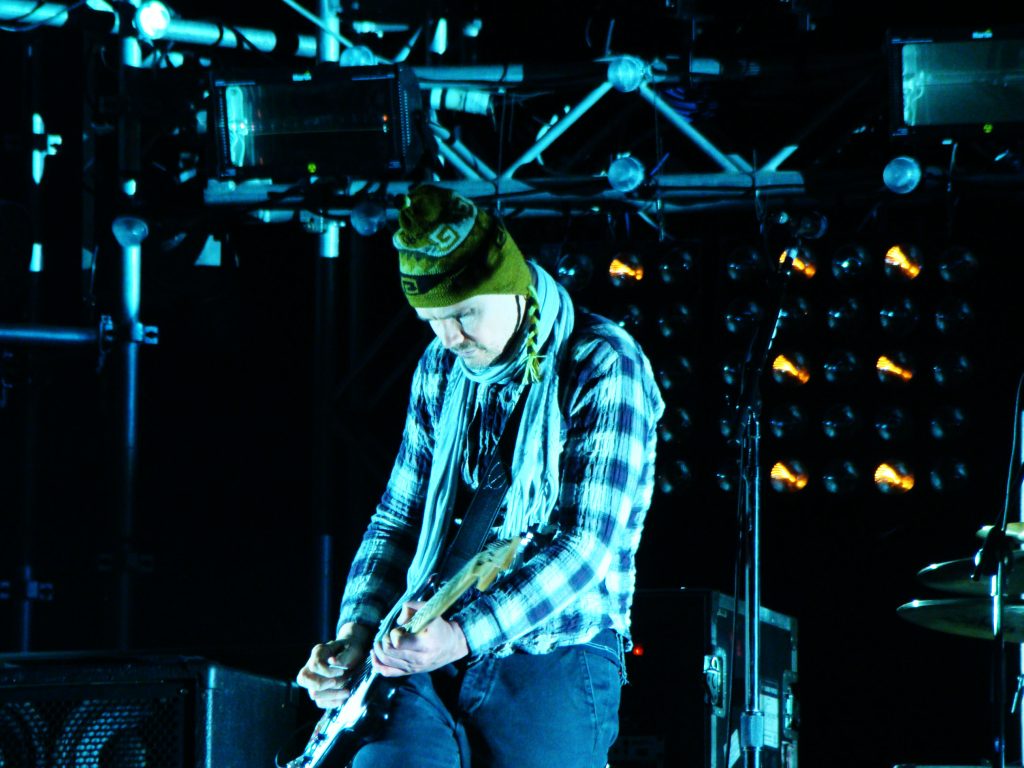 Y qué mejor forma de comenzar que por el principio, cuando anunciaron su regreso a Latinoamérica después de 13 años y entra la banda caminando como quien llega a la sala de ensayos, de lo más natural toman sus posiciones y comienzan con ¡Today! No jodas pues, ni había encontrado mi lugar y nos sorprenden con esta canción. Qué cosa podíamos pensar, qué nos iba a esperar de esta noche si la primera canción nos golpeaba con su esperanzadora distorsión.