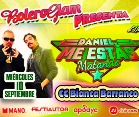 Daniel, me estás matando vuelve a Lima para deleitarnos con su Bolero Glam este Miércoles 10 de Septiembre en CCBianca de Barranco desde las 9PM. Entradas disponibles en Joinnus.