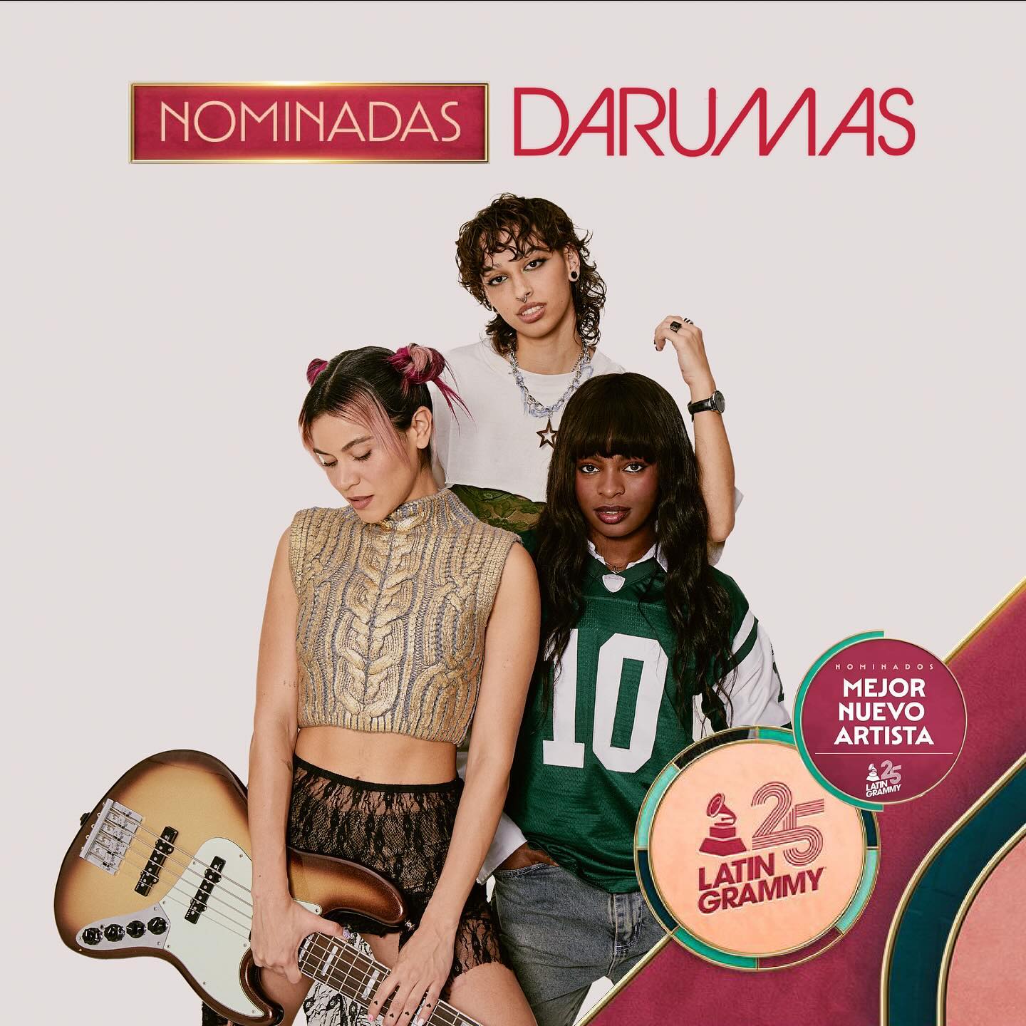 La banda de pop/funk latino DARUMAS acaba de recibir su primera nominación al Latin Grammy en la categoría de «Mejor Artista Nuevo», un increíble reconocimiento al trabajo de la banda en estos últimos seis meses y un logro que ya había sido anticipado por expertos de la industria, entre ellos la revista Billboard.