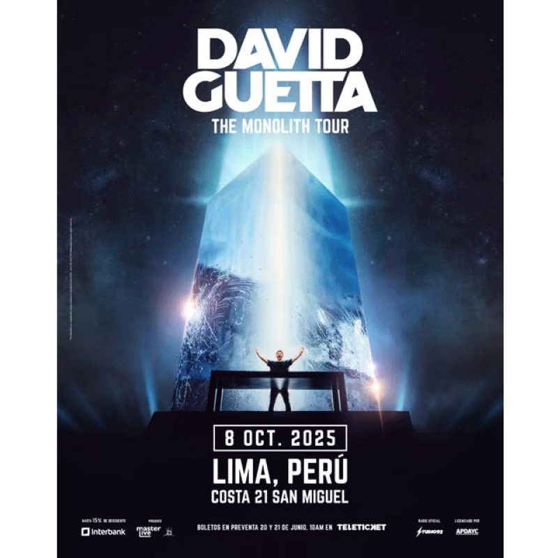 El legendario DJ y productor David Guetta regresa a Lima para hacer vibrar la ciudad este 8 de octubre en Costa 21 con su imponente nuevo espectáculo “The Monolith”, una experiencia audiovisual inmersiva que está revolucionando los grandes escenarios del mundo.