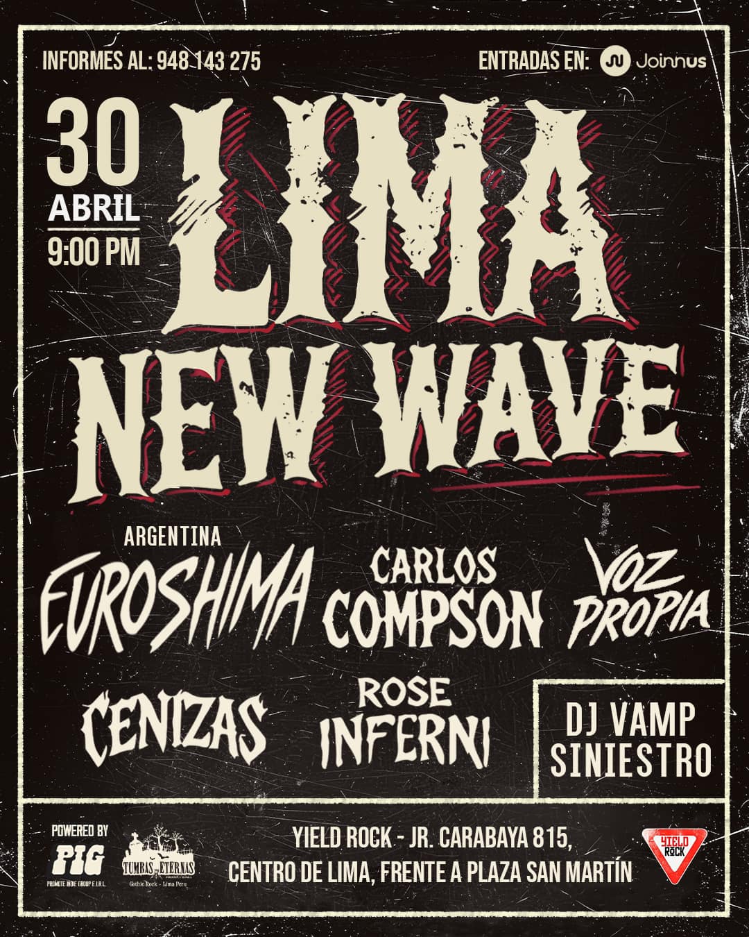 La nueva edición del festival Lima New Wave se realizará este 30 de abril en el escenario del club Yield Rock, ubicado en el Centro de Lima. Esta fecha reunirá a exponentes históricos del dark latinoamericano, con una noche pensada para seguidores del post-punk, la new wave y sus vertientes más densas y nocturnas.