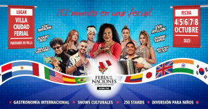 La diversidad cultural tendrá lugar en la Feria de las Naciones del miércoles cuatro al domingo ocho de octubre. Durante cinco días, Lima se convertirá en el epicentro de arte, música, bailes y gastronomía de diversos rincones del mundo, en un evento que busca reunir a familias y amigos con actividades y juegos. Las entradas están disponibles en Teleticket.