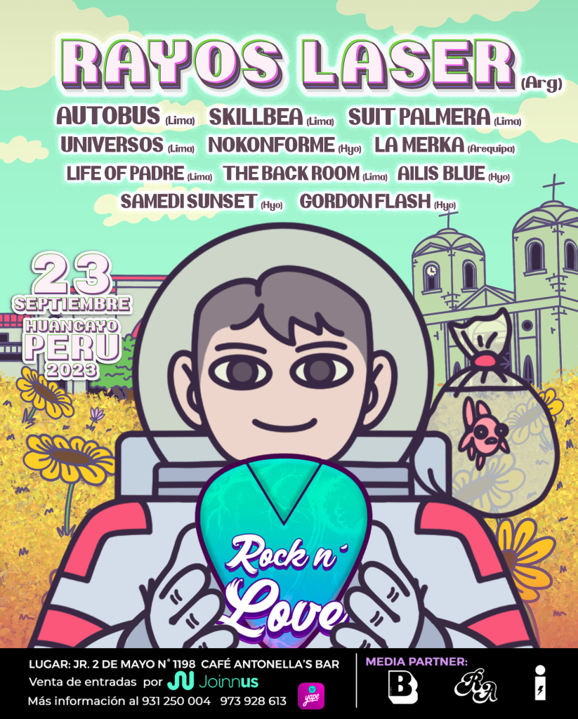 Luego de varias ediciones, el Festival Rock ‘N Love se ha convertido en una de las plataformas musicales más importantes de Huancayo y los andes centrales del Perú. En sus ocho ediciones, han logrado reunir a muchos de los actos más destacados del pop y rock alternativo del Perú; así mismo, a inicios de este año presentaron su primera edición internacional encabezada por la banda argentina Surfistas del Sistema. Con el mismo entusiasmo de siempre, anuncian ahora su segunda edición internacional liderada por la banda argentina Rayos Láser quienes llegan por primera vez a Perú. La cita es el próximo sábado 23 de septiembre en el Café Antonella’s Bar de Huancayo; los boletos están en venta a través de la ticketera Joinnus.com o vía WhatsApp.