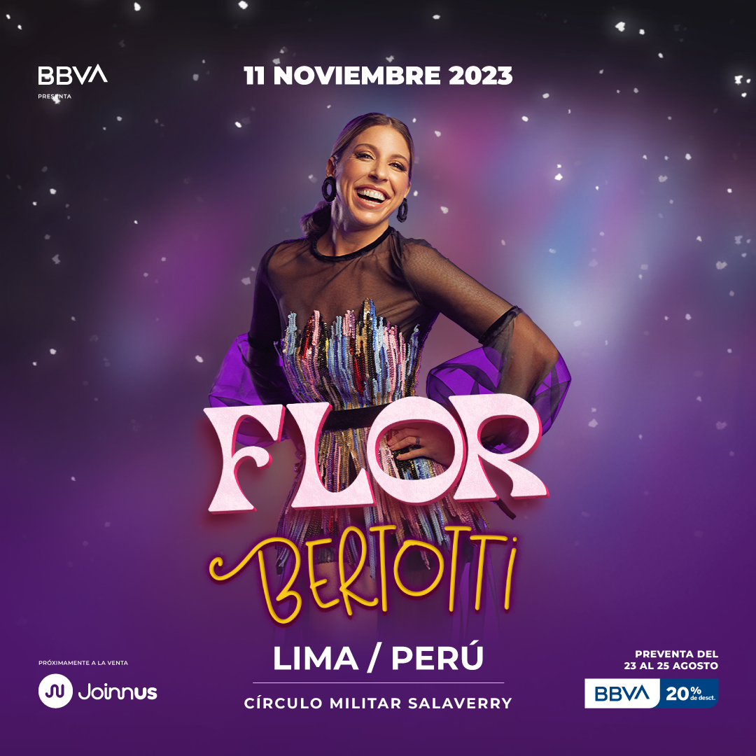 Flor Bertotti se presentará en Lima el 11 de noviembre en el Círculo Militar Salaverry. Las entradas estarán a la venta en Joinnus desde este 23 de agosto a las 11am con 20% de dscto. BBVA.