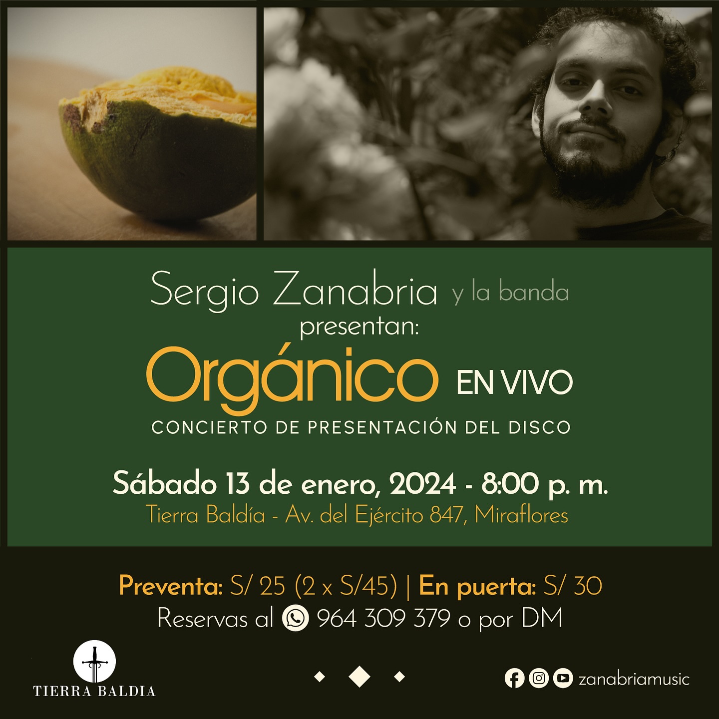 Lo extraordinario de «Orgánico» no se limita a lo digital. Además, el álbum estará disponible en formato físico (CD digipack) a un precio promocional de 20 soles durante el evento de lanzamiento en Tierra Baldía. Este concierto no es solo una presentación musical; es una inmersión en la obra y el universo de Zanabria. Además, podrás conocer de cerca el proceso creativo y la historia detrás de cada canción. Una oportunidad única para conectarte con el artista y sumergirte en la experiencia «Orgánico».