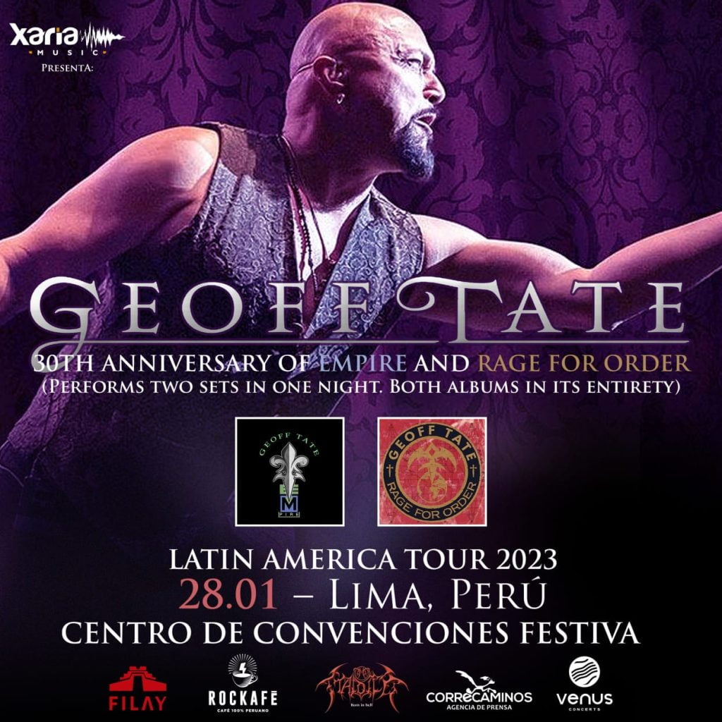Geoff Tate, dueño de una de las voces más auténticas y poderosas del rock, llega a lima este 28 de enero para presentarse en el Centro de Convenciones Festiva con una gira especial donde estará presentando lo mejor de los dos discos de reconocimiento a nivel mundial y que marcaron su carrera RAGE FOR ORDEN y EMPIRE en un concierto que sin duda será espectacular.