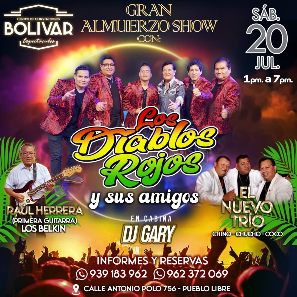 Los Diablos Rojos estarán ofreciendo un show almuerzo junto a otro artista reconocido como es el maestro Raúl Herrera, quien fuera primera guitarra de otra banda pionera como fueron Los Belkin, así como la agrupación El Nuevo Trio de Chino Cucho y Toto, Y para que la fiesta no acabe estará el DJ Gary.