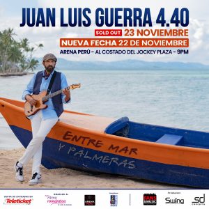 Después de agotar todas las entradas para sus shows anunciados en Lima, Santiago y Bogotá; Juan Luis Guerra confirma segunda fecha en Perú. Este 22 de noviembre, el ganador de más de veinte Grammys y considerado como uno de los artistas latinos más importantes del mundo tocará en el Arena Perú. Las entradas para este nuevo concierto se empezarán a vender desde este miércoles 28 de septiembre a las 10:00 a.m. vía Teleticket. La primera zona tendrá sillas numeradas y la segunda será stand up.