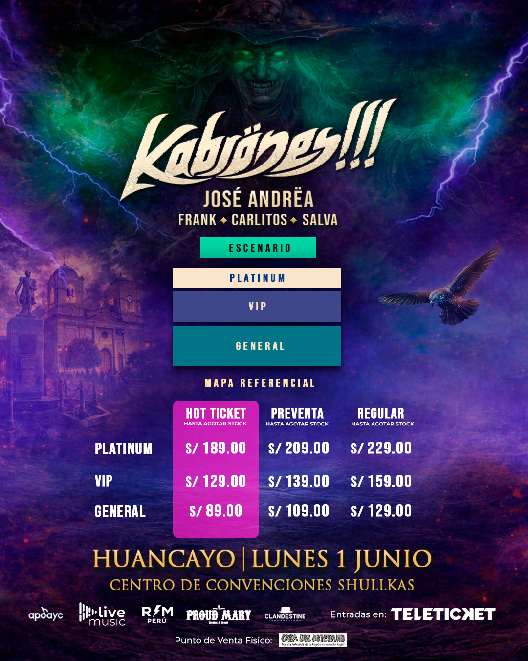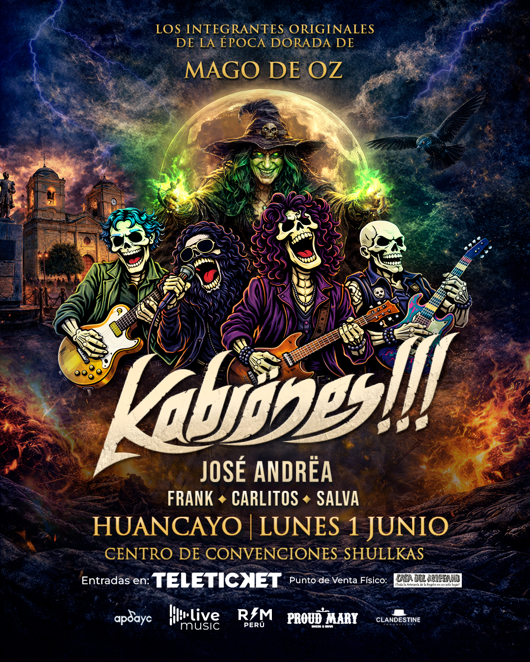 Kabrones, proyecto que reúne a los integrantes originales de la época dorada de Mägo de Oz anunció una esperada gira por Perú. Recientemente, han anunciado que esta seguidilla de conciertos dará inicio en Huancayo, ciudad que es considerada como una de las cunas del rock en los últimos tiempos.