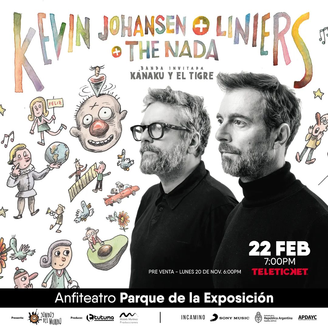 Kevin Johansen, su banda The Nada y Liniers están de regreso con un espectáculo único, lleno de canciones, dibujos y mucho humor, un show reconocido por el público y por la crítica. El concierto se realizará este 22 de febrero en el Anfiteatro del Parque de la Exposición.