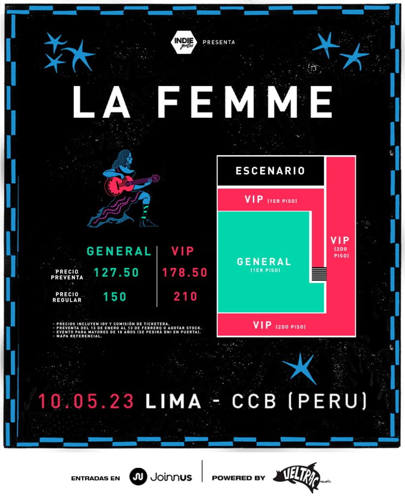 La formación liderada por Sacha Got y Marlon Magnée llegará al país para presentar en vivo su último disco, Teatro Lúcido, el cual fue publicado a finales de 2022. Este es el primer álbum íntegramente en español de La Femme, «una especie de diario de viaje que se inspira en las marchas de Semana Santa, el pasodoble, el reggaeton, los ritmos brasileños, las guitarras clásicas y los ritmos andaluces, las castañuelas, las trompetas y también los sonidos ochentosos».