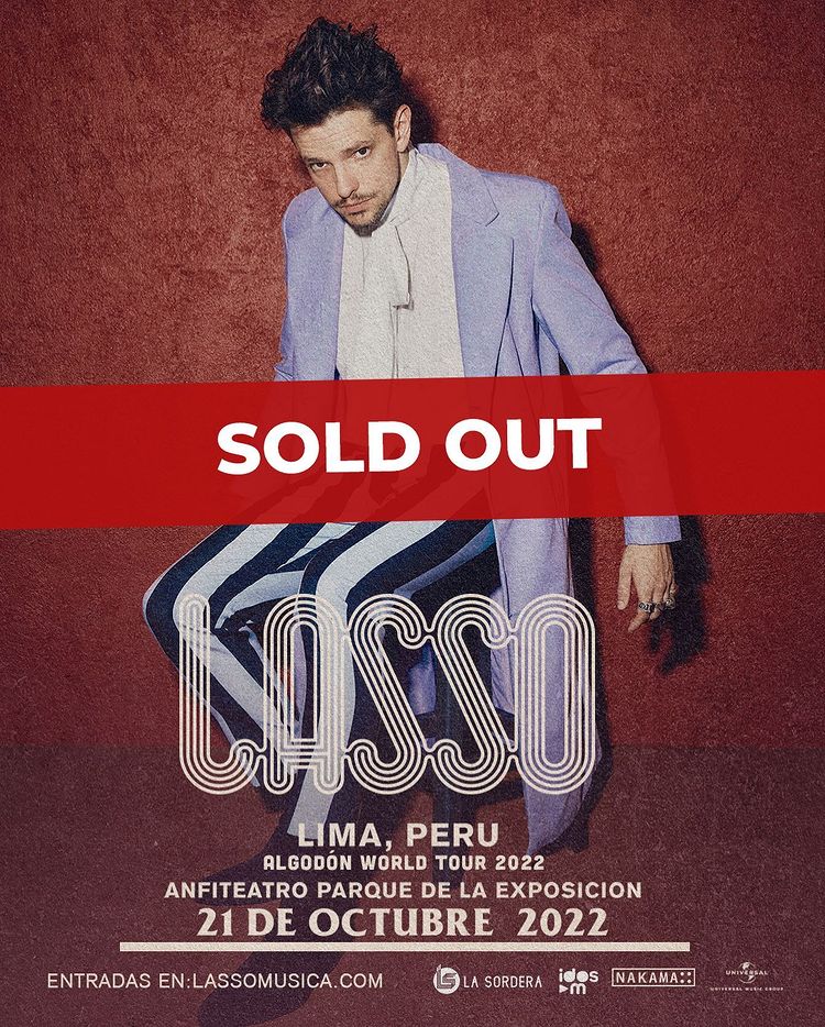 El artista venezolano Lasso volverá a Lima para presentarse el viernes 21 de octubre 2022 en el Anfiteatro del Parque de la Exposición. Lasso llegará para cerrar su Algodón Tour 2022.