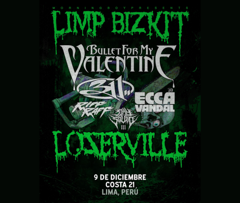 Limp Bizkit, la banda estadounidense más explosiva del mundo y que marca un antes y después en la música, regresa a Perú tras varios años de ausencia con su gira mundial “Loserville Tour». Y no vienen solos: Estarán acompañados por artistas de alto voltaje como Bullet for me Valentine, Ecca Vandal, 311, Riff Raff y Slay Squad. La cita es el próximo 9 de diciembre en Costa 21. Entradas en Teleticket.