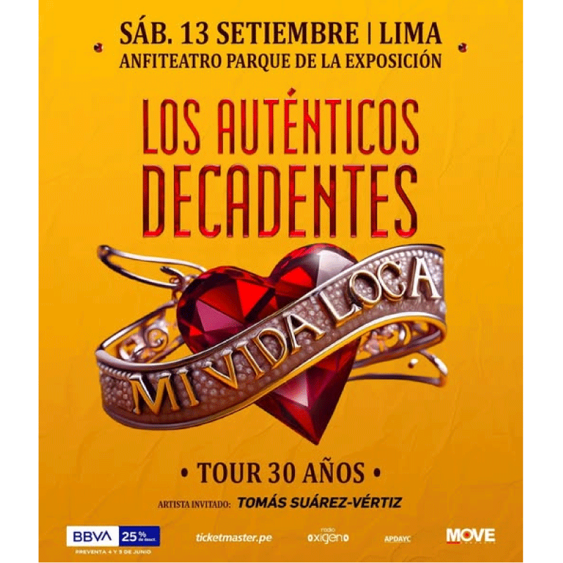 Los Auténticos Decadentes regresan a Lima para celebrar el 30 aniversario de su álbum más icónico, “Mi Vida Loca”. El concierto tendrá lugar el sábado 13 de septiembre en el Anfiteatro del Parque de la Exposición.