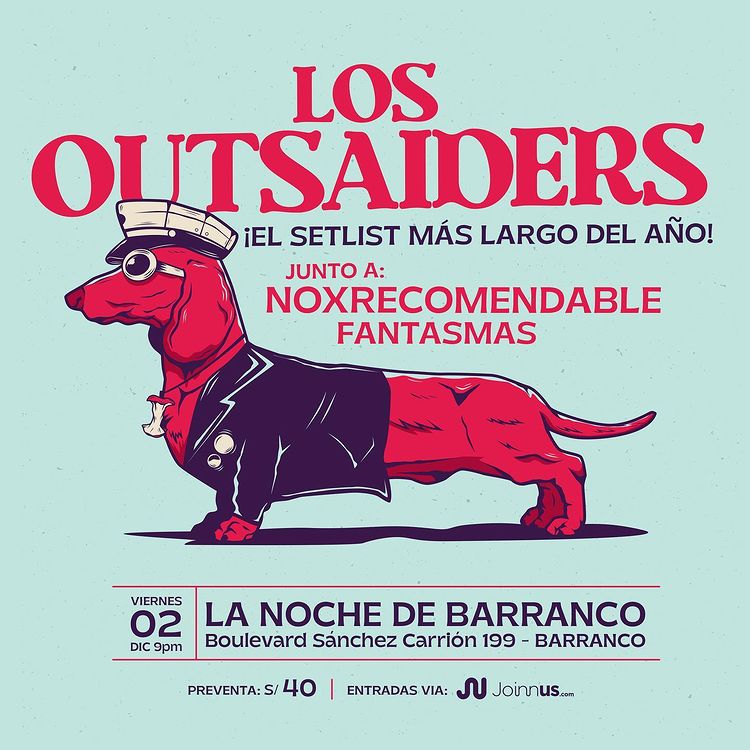 Los Outsiders se presentarán este 2 de diciembre del 2022 en la Noche de Barranco, estarán acompañados por No Recomendable y Fantasmas.