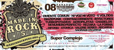 Como ya nos tienen acostumbrados Made in Rock Producciones, esta vez están preparando lo que vendría a ser la quinta edición del ya conocido Made in Rock, festival que ha tenido como ubicación el distrito de Los Olivos desde finales del 2005, en donde se dio el primero de estos eventos.