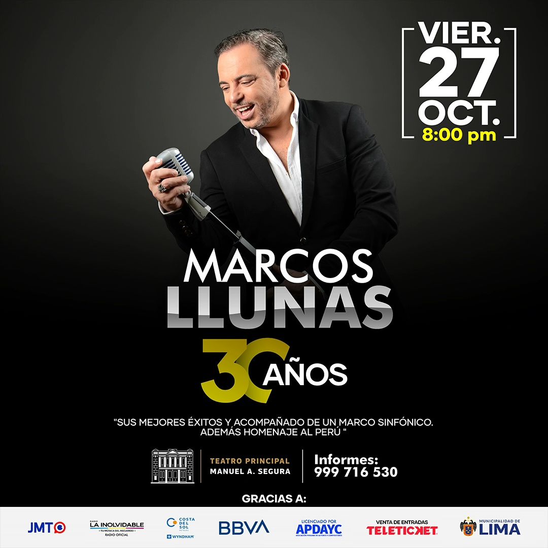 Marcos Llunas celebra su 30 aniversario con un concierto el 27 de octubre en el Teatro Manuel Segura.