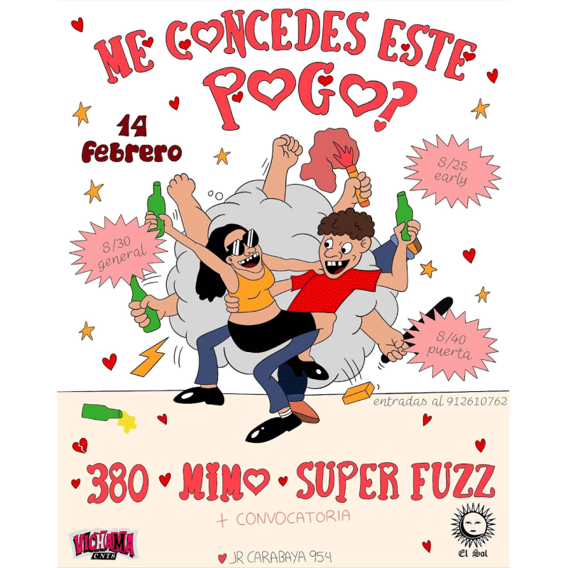 380, Mimo y Superfuzz presentan: «Me concedes este pogo?»este 14 de febrero en Vichama Conciertos.