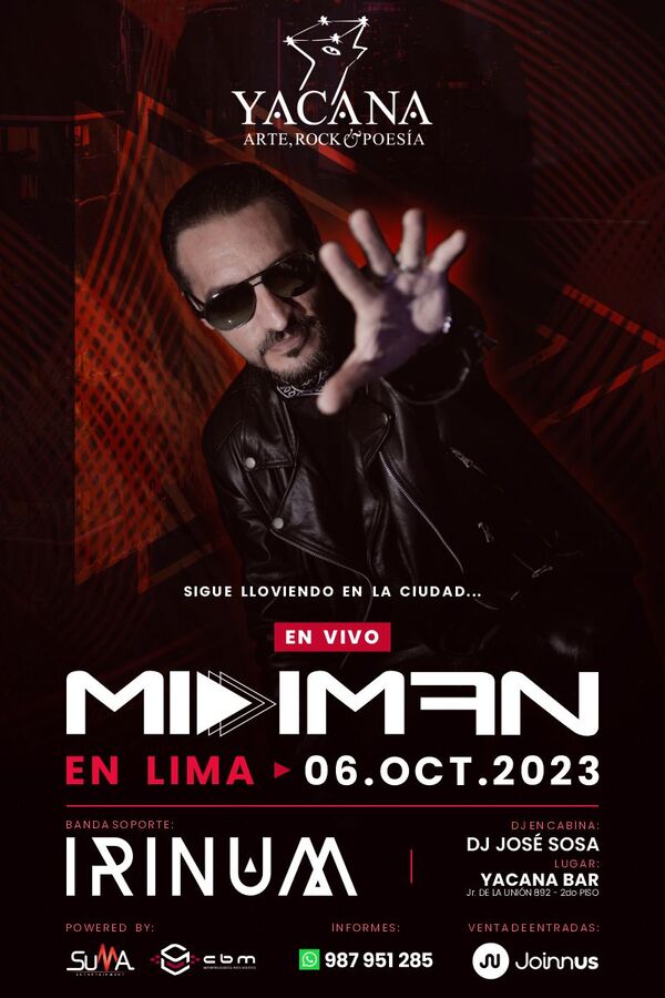Luego de 10 años, regresa a Perú: MIDIMAN, para interpretar sus reconocidos éxitos como «Sigue lloviendo en la ciudad», «Dilo», «No tienes nada que perder», «Lado oscuro» y muchos más.