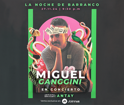 El cantautor Tacneño Miguel Ganggini te invita a una noche musical, donde presentará lo mejor de su repertorio. Con un ensamble completo de primer nivel, Ganggini recorrerá los temas más destacados de sus distintos discos y sencillos, desde su primer álbum «Viajes» hasta su más reciente trabajo «Beagá».