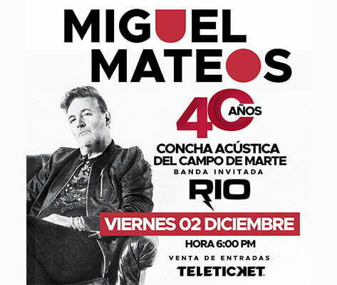 La leyenda argentina del rock en español Miguel Mateos, celebrará sus 40 años de gran trayectoria musical, presentando un gran concierto en nuestra capital el día viernes 2 de diciembre próximo, el cual se realizará en la Concha Acústica del Campo de Marte.