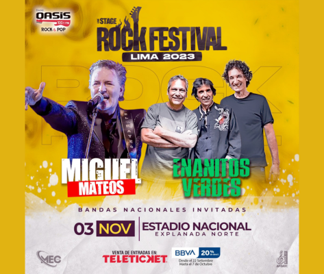 El cantante y compositor argentino Miguel Mateos y la banda Enanitos Verdes unirán fuerzas para un concierto de rock que rememorará todos los hits de la época. La cita es el viernes 3 de noviembre en el Estadio Nacional (explanada Norte). Además, habrán bandas nacionales invitadas por confirmar. Las entradas están a la venta en Teleticket con precios desde S/ 119.