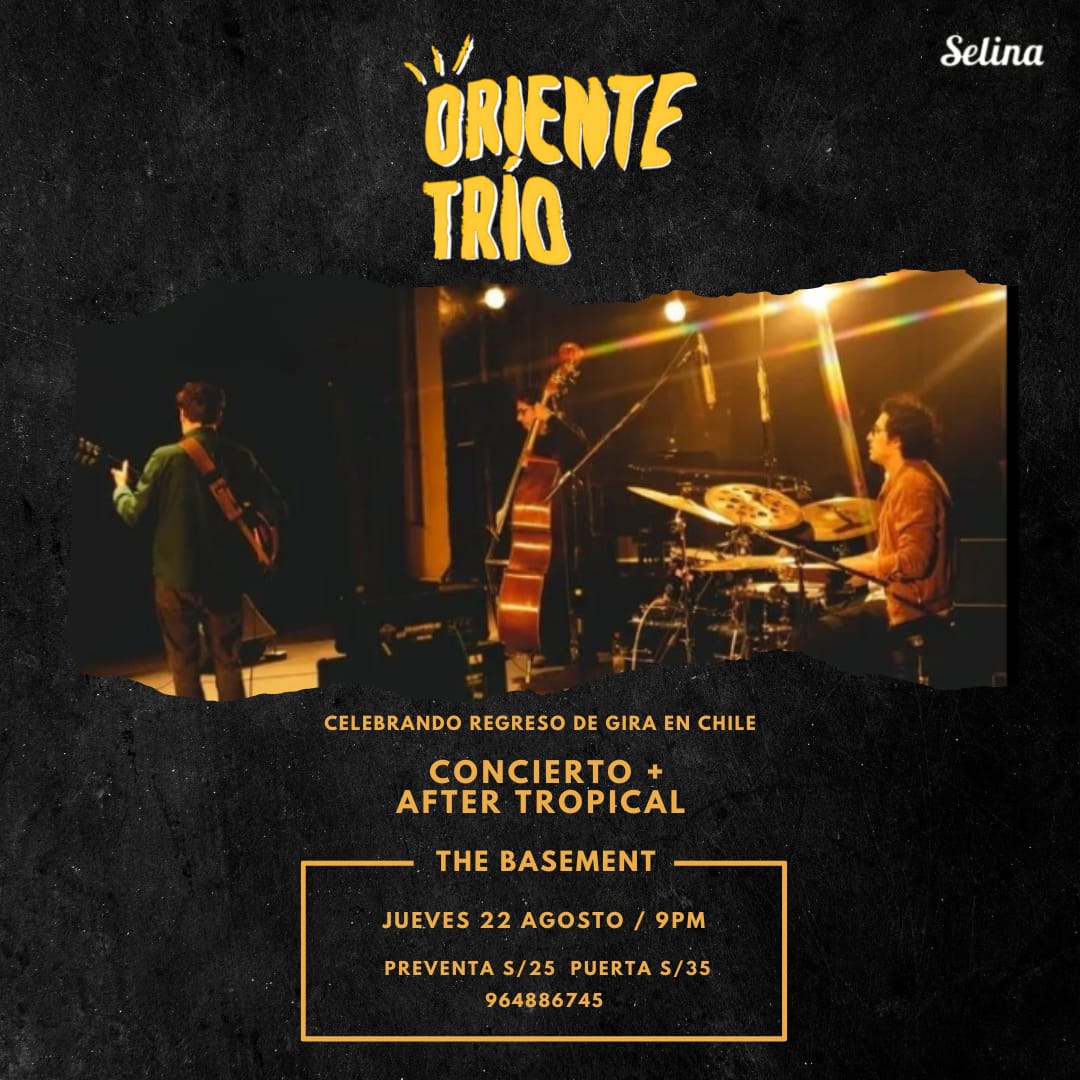Celebrando las exitosas presentaciones en dos de los principales escenarios para su estilo musical en nuestro continente, en el Festival Internacional de Jazz de Valparaíso y en el Thelonius espacio de jazz en Santiago de Chile, Oriente Trío ofrecerá un concierto el jueves 22 de agosto en Selina the Basment, ubicado en Alcanfores 465 Miraflores, desde las 9 de la noche.
