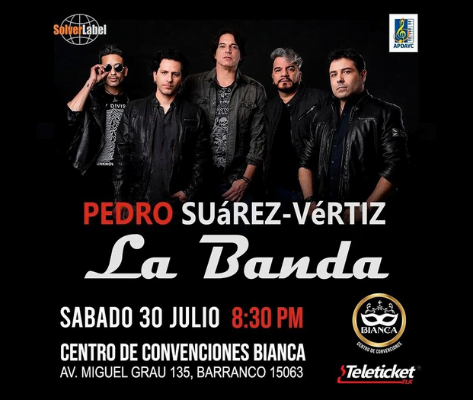 La Banda oficial que el cantautor peruano Pedro Suárez-Vértiz preparó se presentará con todos sus éxitos el sábado 30 de julio 2022 en el C.C. Bianca de Barranco.