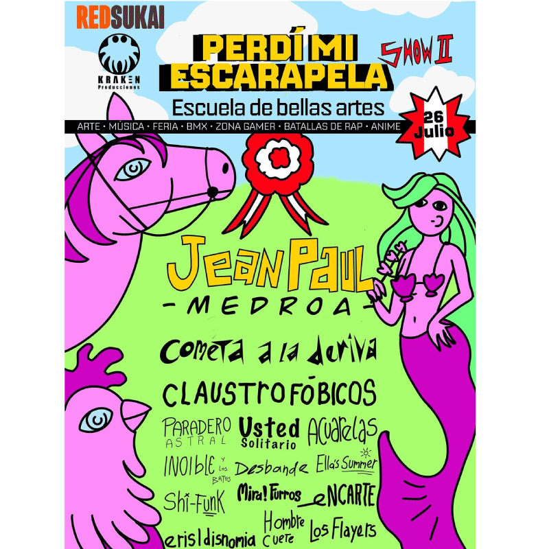 Este 26 de julio no te pierdas un concierto único junto a Jean Paul Medroa, Cometa a la deriva, Claustrofóbicos, Paradero Astral y más en la Escuela de Bellas Artes de Ica.