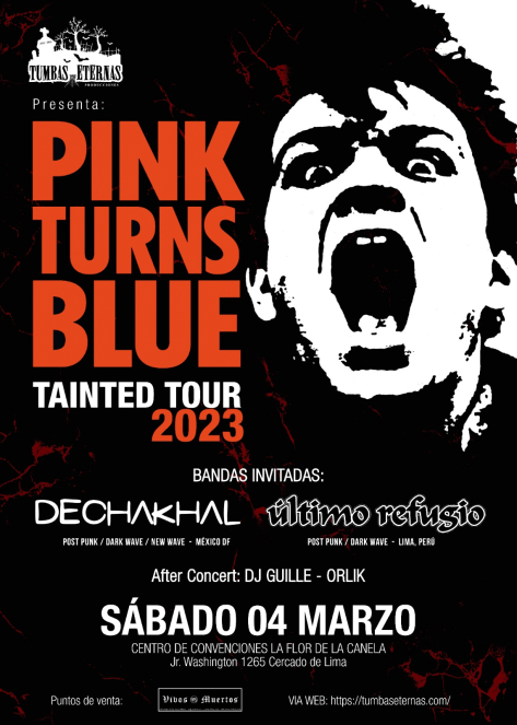 Tumbas Eternas se complace en presentar por primera vez y única presentación a la Legendaria banda Alemana Pink Turns Blue a uno de los pioneros del Post Punk y Darkwave europeo estarán presentes en Lima, Perú..