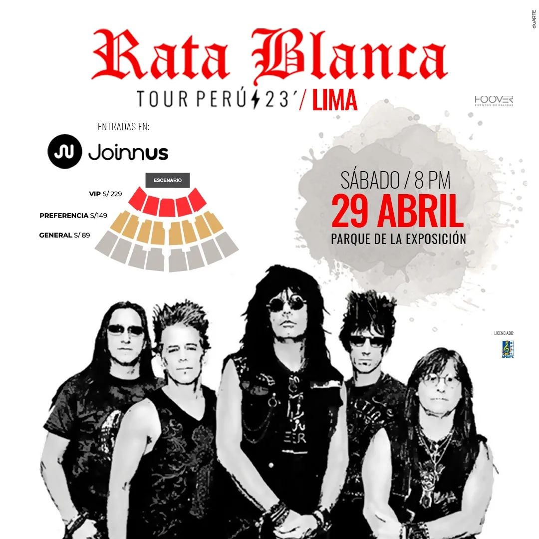La banda argentina de hard rock y heavy metal, Rata Blanca, llega a Lima para dar un concierto este 29 de abril en el Parque de la Exposición.