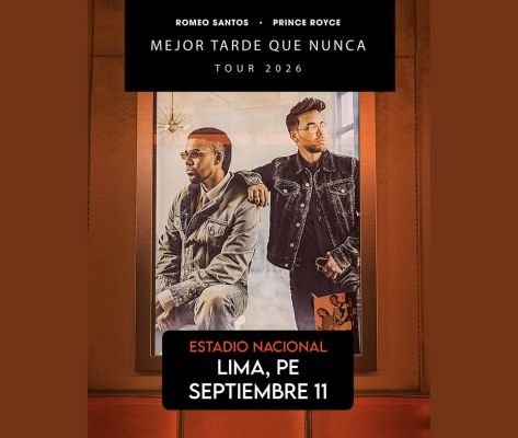 Dos grandes exponentes de la bachata, Romeo Santos y Prince Royce, se unen para ofrecer un concierto en Lima el próximo 11 de septiembre del 2026. El escenario elegido para esta magna cita es el Estadio Nacional, donde presentarán su esperada gira conjunta titulada «Mejor Tarde Que Nunca».