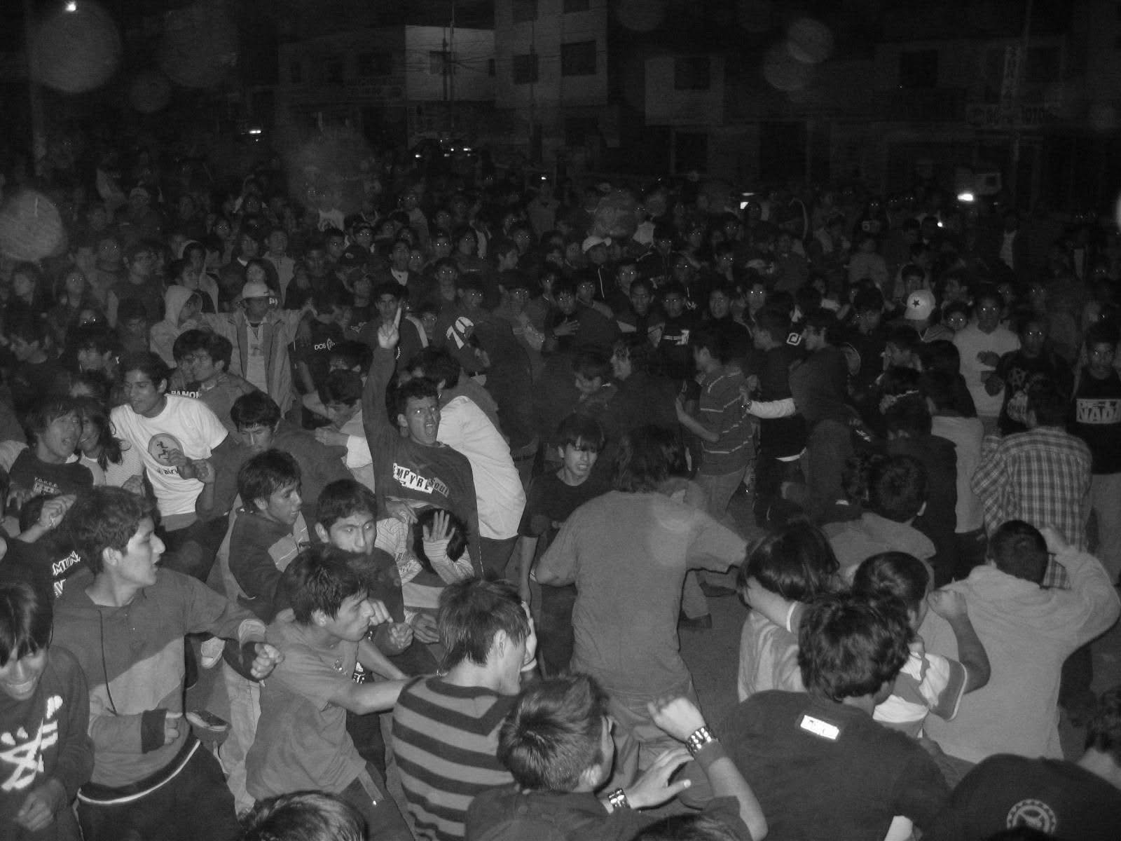 Básicamente, no teníamos contactos ni nada para tocar. Lumi, que en esa época recién había empezado a tocar el bajo con nosotros, conocía a alguien que conocía a alguien y se enteró de que habría un concierto en el centro de Lima, en contra de la dictadura fujimontesinista, en un local que era de Acción Popular.