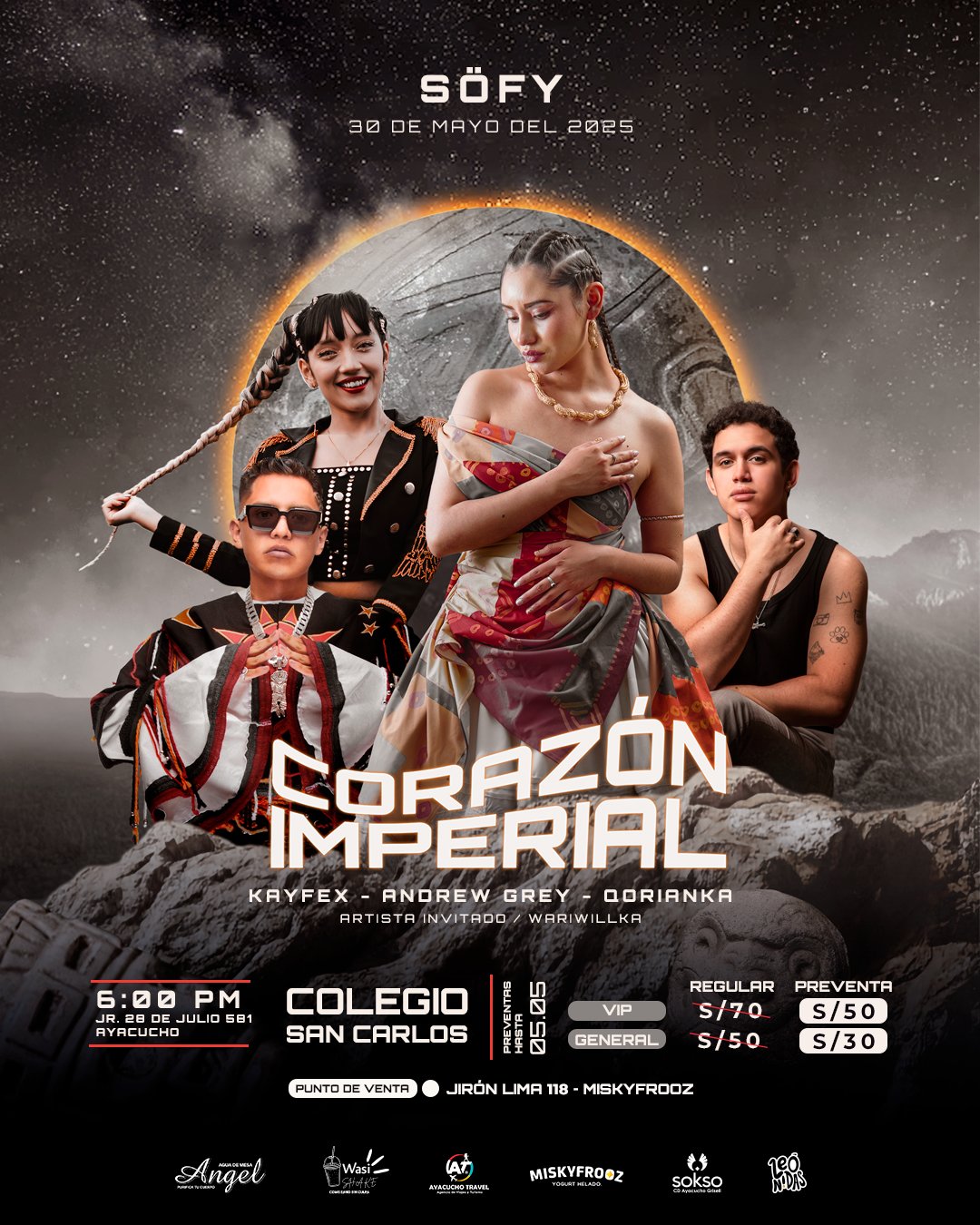 Este viernes 30 de mayo de 2025, la compositora y exponente pop SÖFY ofrecerá un concierto único para presentar en vivo su esperado nuevo álbum «Corazón Imperial» en el Colegio San Carlos (Jr. 28 de Julio 581 en Ayacucho) a partir de las 5 p. m.