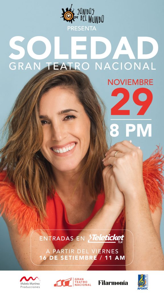 La cita es el 29 de noviembre en el Gran Teatro Nacional, un espacio muy solicitado por los grandes de la música y donde Soledad tenía una fecha para mayo de 2020 pero que, debido a la pandemia, se postergó. Valió la pena la espera. Lima podrá escuchar a una de las voces más potentes de Argentina y que guarda gran cariño y respeto por nuestros compositores, en especial por Chabuca Granda, lo que nos asegura que escucharemos hermosas interpretaciones, en especial José Antonio.