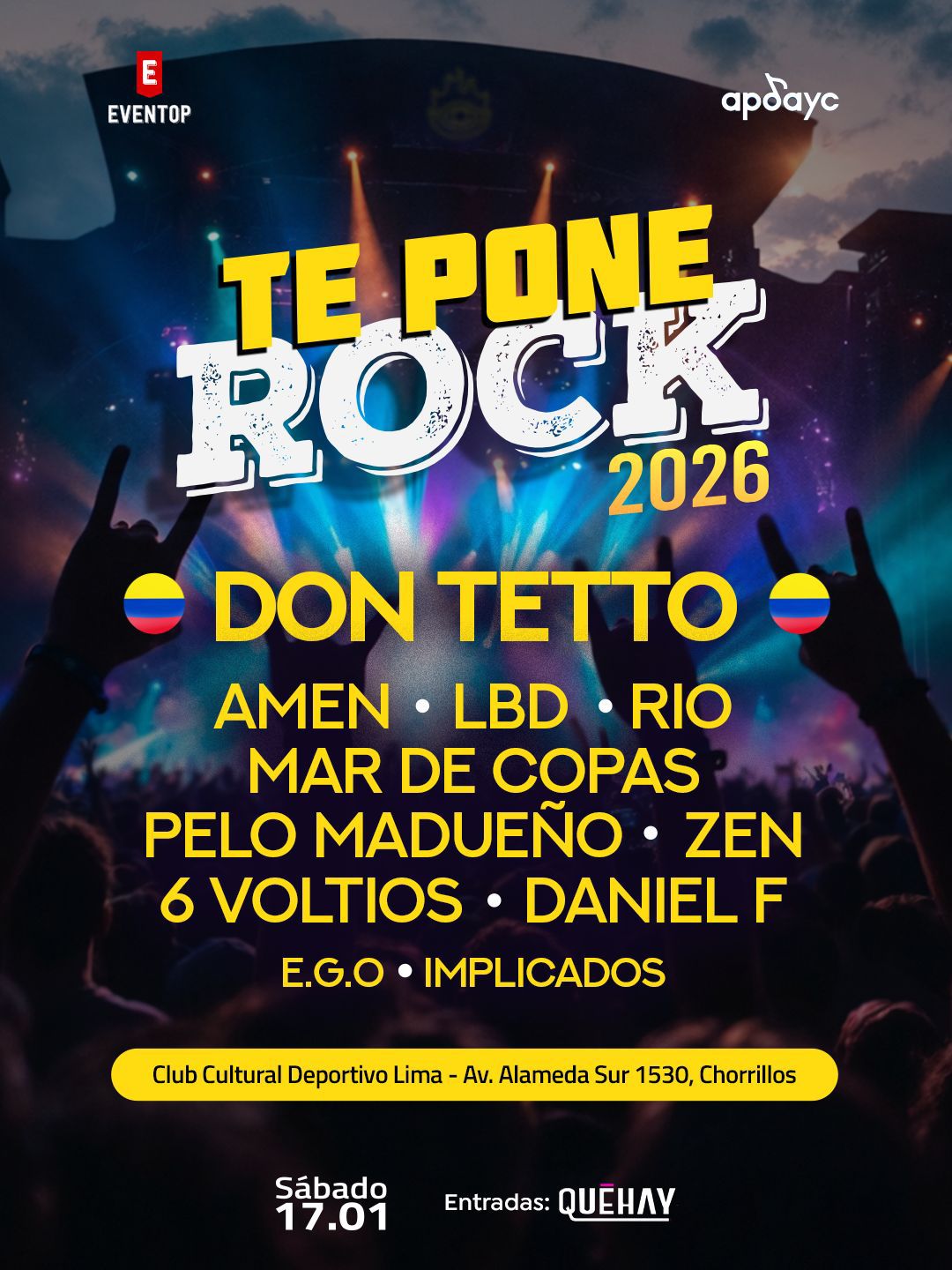 Entradas: https://www.quehay.com.pe/teponerock2026?