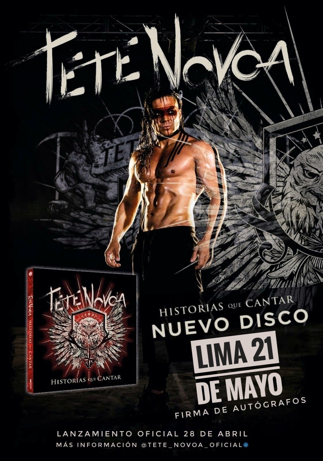 Tete Novoa, uno de los vocalistas de la banda Heavy Metal Saratoga, llega al Perú para presentar su nuevo lanzamiento de su disco llamado HISTORIA QUE CANTAR este 21 de mayo, ha realizado numerosa giras internacionales por Latinoamérica, proclamando mejor vocalista de Rock en España, reconocida por la revista LA HEAVY, siendo portada de la misma a nivel nacional en el ejemplar de Marzo 2023.
