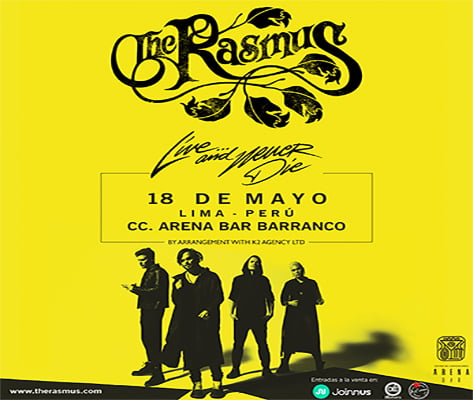 The Rasmus, la banda de rock finlandesa, ganadora de múltiples discos de platino, conocida mundialmente por su hit “In The Shadows”, llega para brindarnos un concierto íntimo el jueves 18 de mayo en el CC. Arena Bar de Barranco, visitará México, Colombia, Ecuador, Perú, Chile y Argentina dentro de su gira “Live and Never Die”.