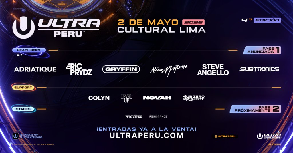 ULTRA Perú ha revelado oficialmente el Phase 1 lineup de su esperada edición 2026, que se llevará a cabo el sábado 02 de mayo en el Club Cultural Lima. Con esta nueva edición, el festival celebra su cuarta realización consecutiva en el país, consolidando su crecimiento dentro del circuito ULTRA Worldwide y reafirmando a Perú como un destino clave para la música electrónica en Latinoamérica.
