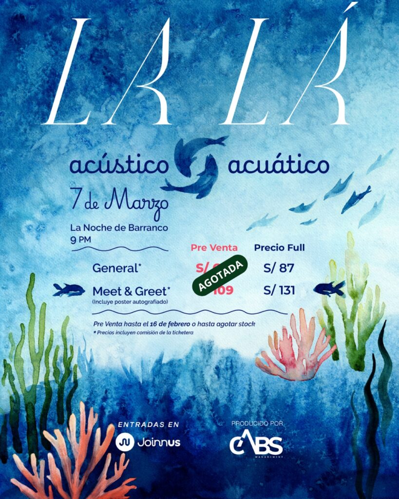 Las entradas para Acústico Acuático ya están disponibles en Joinnus. Los precios son: S/ 131.00 para la opción Meet & Greet, que incluye un afiche autografiado, y S/ 87.00 para la entrada General.